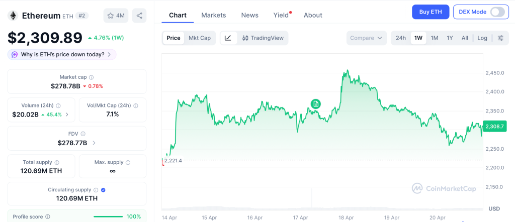 Ethereum (ETH) Price at $2,309 as DeFi Confidence Faces Hack Fallout