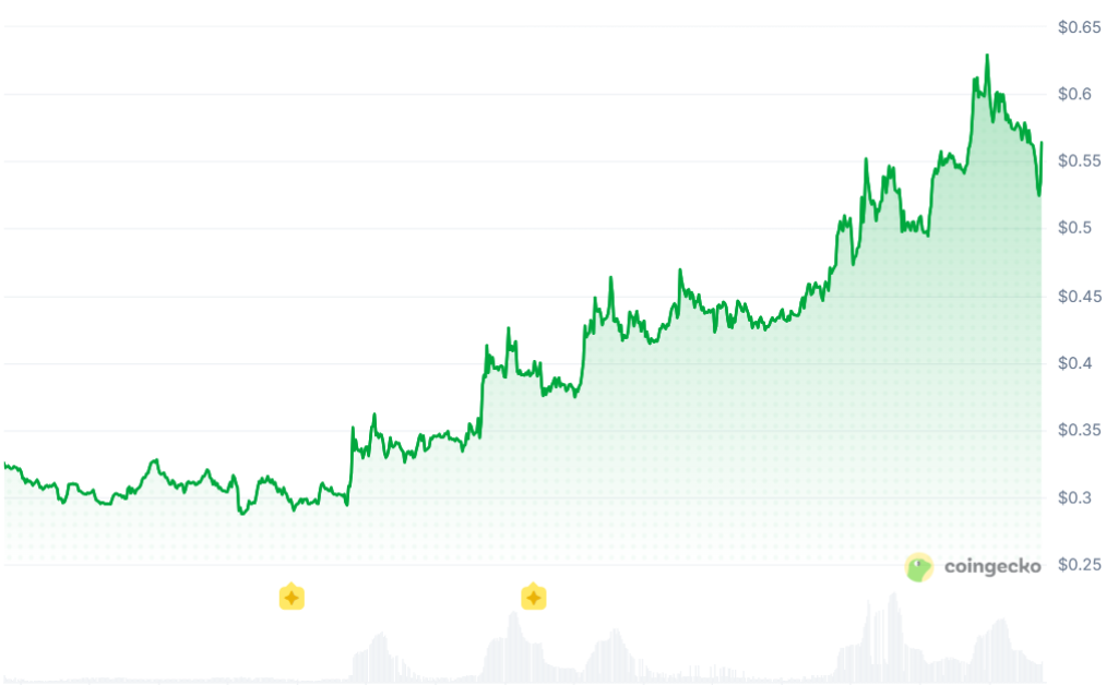Akash Network (AKT), which was at $0.5638 as of March 23rd, was up 73% in the last month. It has a specific catalyst driving that momentum. The Burn-Mint Equilibrium (BME) proposal, which concluded voting on March 14, 2026, directly ties AKT burning to network spending, creating a deflationary mechanism that kicks in as more developers use the platform. Early data already shows the circulating supply dropped from 3.696 million to 3.562 million AKT in just one week post-proposal.