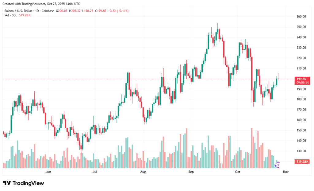 Solana price today holds near $199 after volatile weeks in October. Strong network performance and rising use cases keep SOL active in market charts. Analysts expect a return to $230 or higher. Many holders believe Solana will remain a top crypto investment for long term crypto gains.
