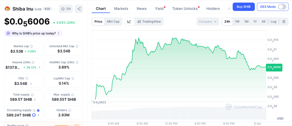 Shiba inu trades near $0.0000060 according to CoinMarketCap, sitting 93% below its all-time high with 78% of holders classified as diamond hands who held for over a year according to OpenPR.