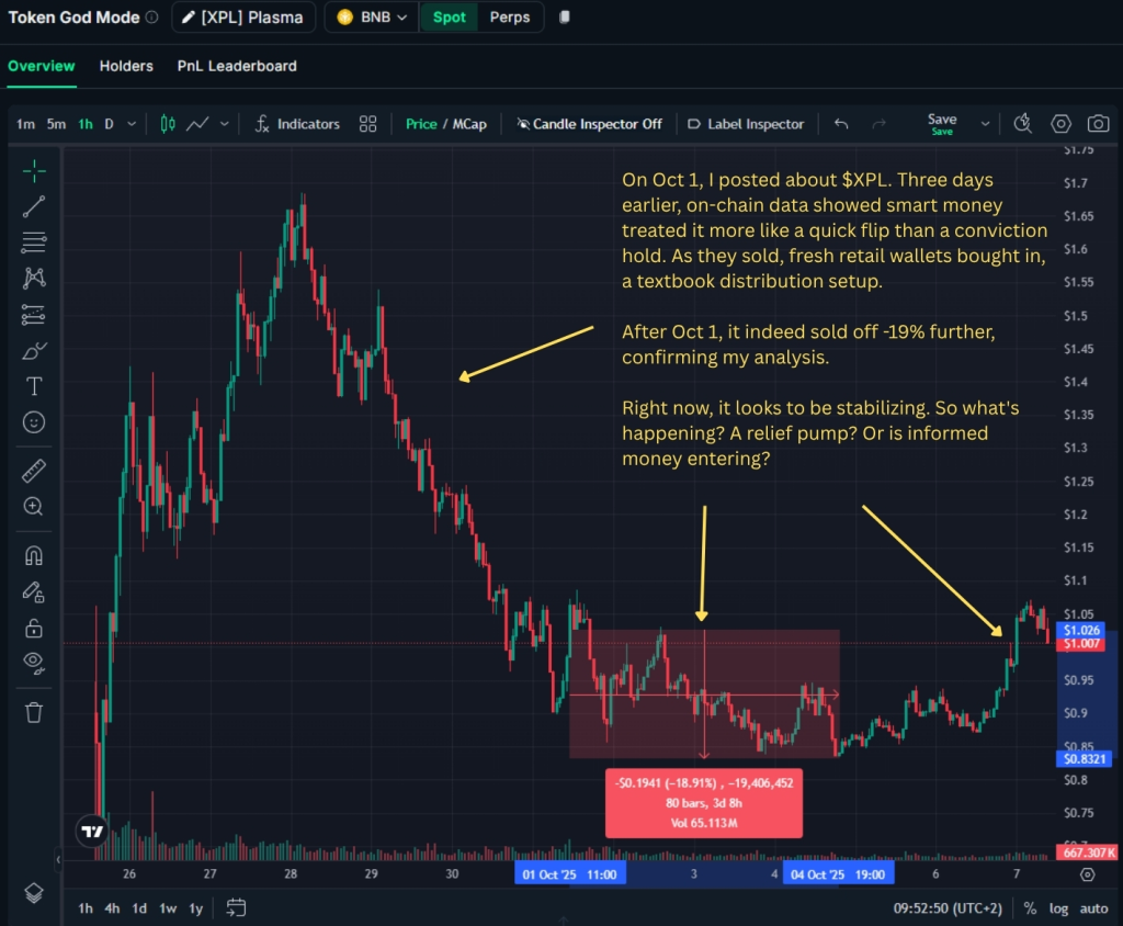 Headlines were bullish again: the CEO denied team-dumping rumors, a Chainlink integration was announced, and Aave added support for XPL. Retail investors rushed to buy the dip, convinced the bottom was in. But as Cryptor revealed, the smart money didn’t return during that move.