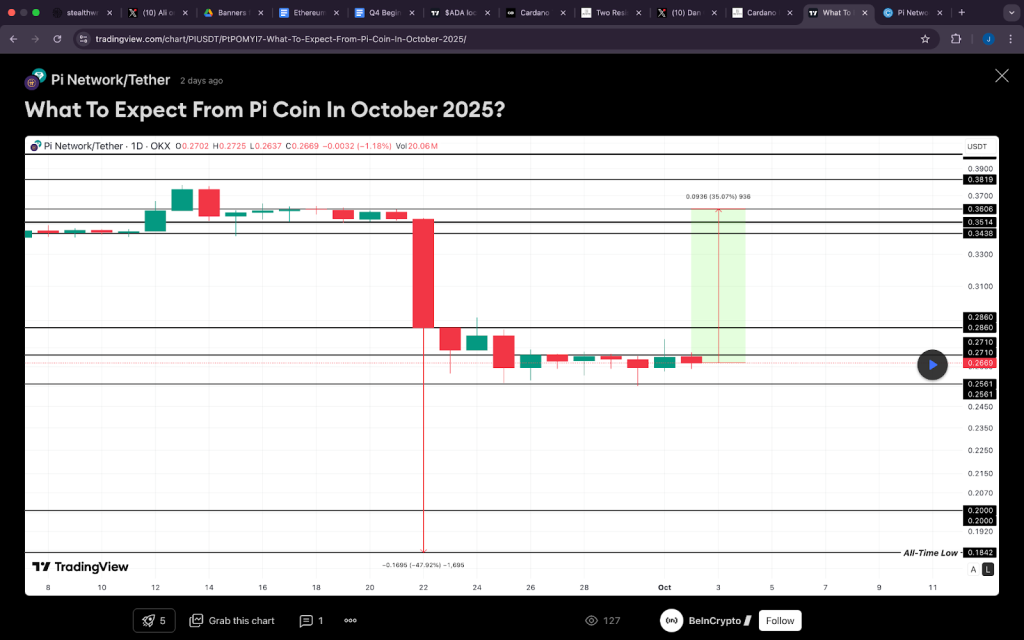 Analysts note that if Pi breaks $0.25, it could quickly slide to $0.22 or even $0.18, signaling sharp downside risk. On the flip side, October’s “Uptober” trend could help Pi Coin reclaim strength, with targets at $0.286, $0.340, and potentially $0.360. Pi Network updates suggest the team is committed to growth, but traders remain cautious about near-term price stability.