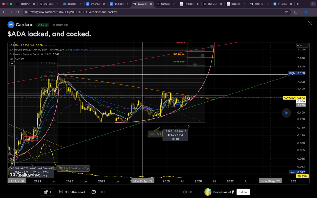 ADA currently trades around $0.845. The recent announcement that the United States government added Cardano to its digital asset stockpile initiative has sparked heavy debate. While Bitcoin dominates the reserve, ADA’s inclusion highlights its growing credibility in mainstream finance.