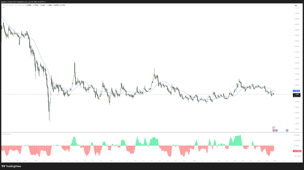 The 30-period simple moving average is acting as a dynamic guide. When the XRP price moves above it, short-term momentum improves, but those moves haven’t lasted. Each push higher has been followed by a return toward the mean, showing that buyers are not fully in control yet.