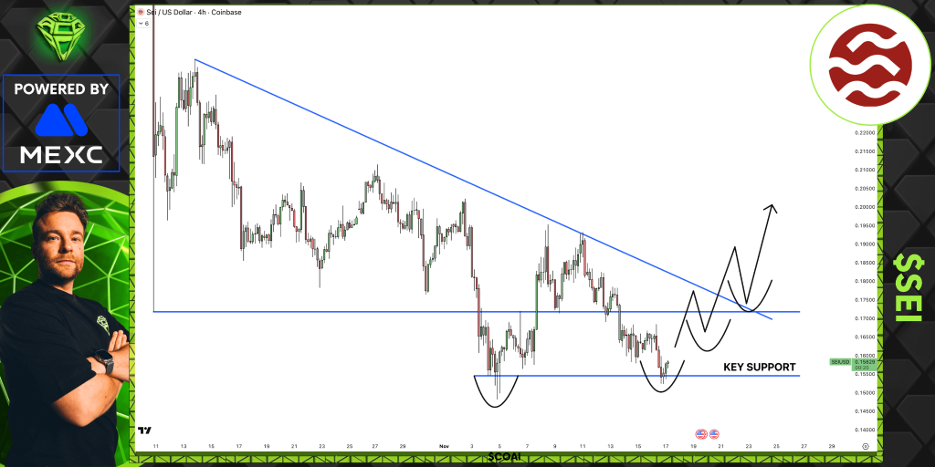 A clean breakout above that trendline would be the first real signal that momentum is shifting. If SEI instead loses $0.155, all bets are off and a deeper drop becomes the most likely outcome.