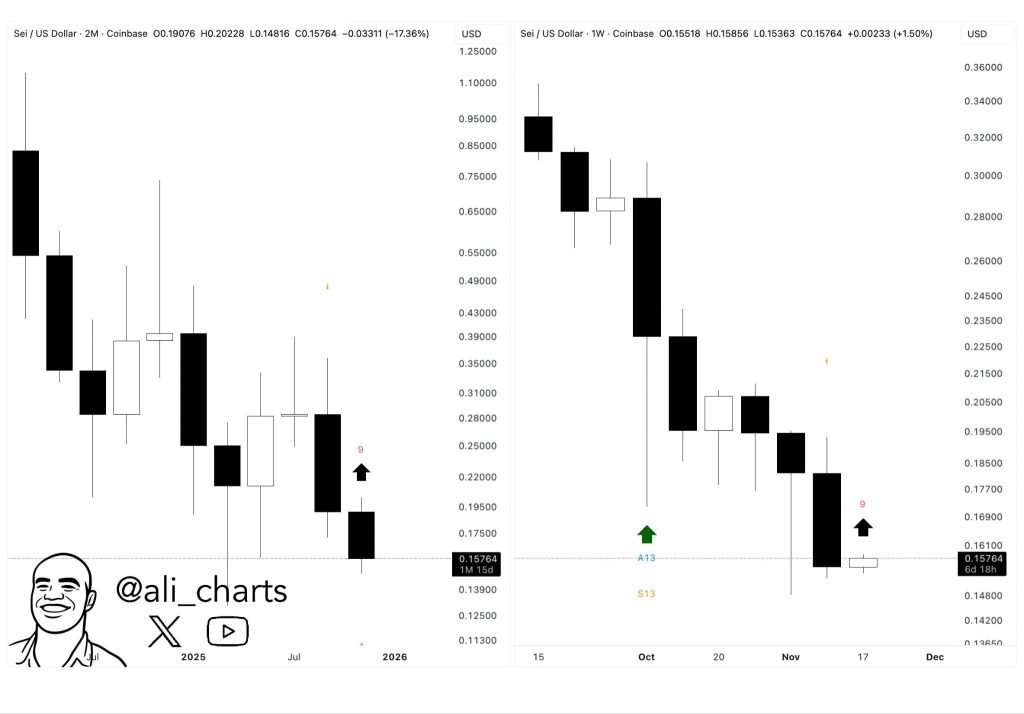 He also highlighted how important it is for SEI to defend the key support around $0.155. If that level holds, it could act as the pivot that finally gives the price a chance to push into a bullish week.