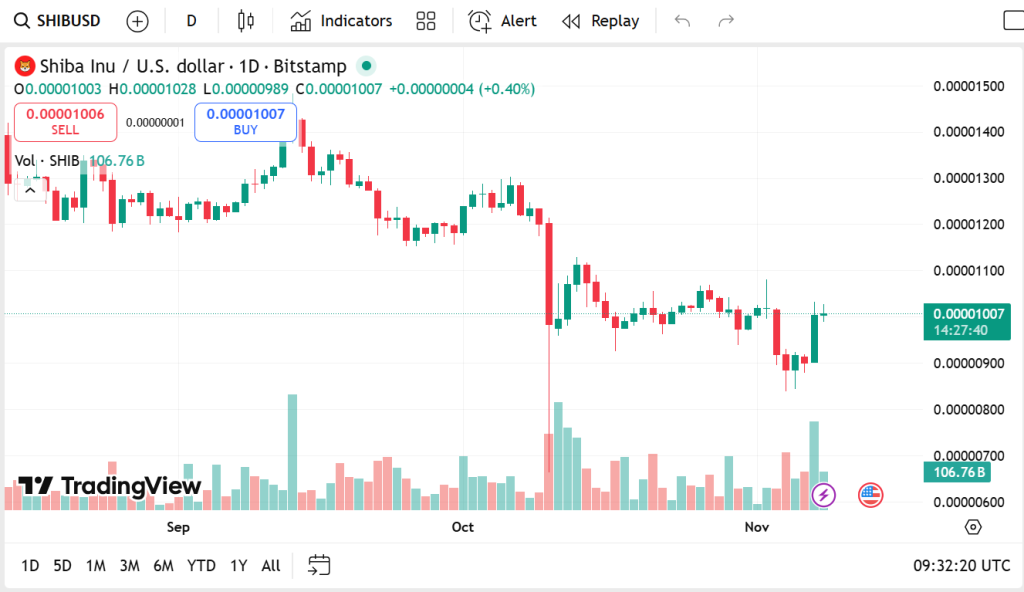 Shiba Inu coin is currently selling at $0.00001006 following a significant gain of about 7.58% in the last 24 hours with a market capitalization of about $5.91 billion.