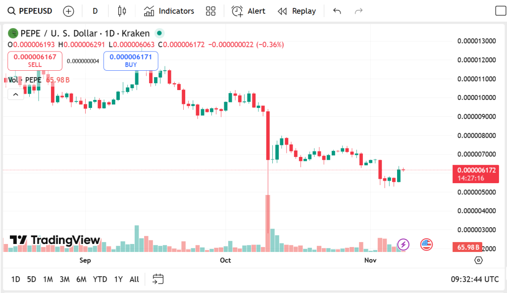 Pepe Coin is also in recovery mode, climbing 6.83% to reach $0.000006167. With a market cap of $2.58 billion and volume jumping 46.61% to $627.14 million, the Pepe Coin rally mirrors the renewed meme momentum seen across the market. It has benefited from its already strong community base and the recent injections of liquidity on decentralized exchanges.