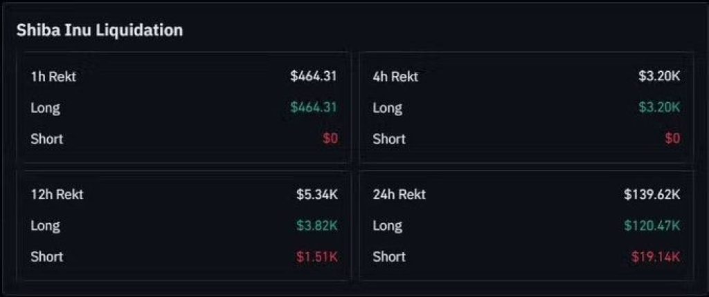 Liquidation data also gives a bit of insight into what’s happening beneath the surface. Over the past 24 hours, about $139K in SHIB positions were wiped out, and most of that came from long traders, not shorts.