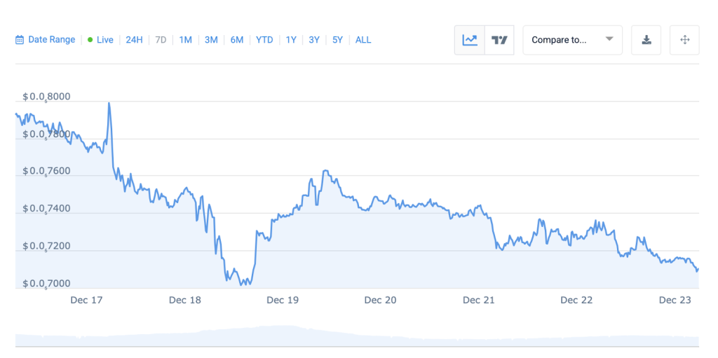 SHIB has had a difficult week that challenges its core investment case. The token fell 2.4% to around $0.000007, testing Black Friday support as Shibburn reported zero token burns in 24 hours, the first complete halt this year. For a token whose entire narrative rests on deflation, that’s genuinely problematic for the Shiba Inu price prediction.