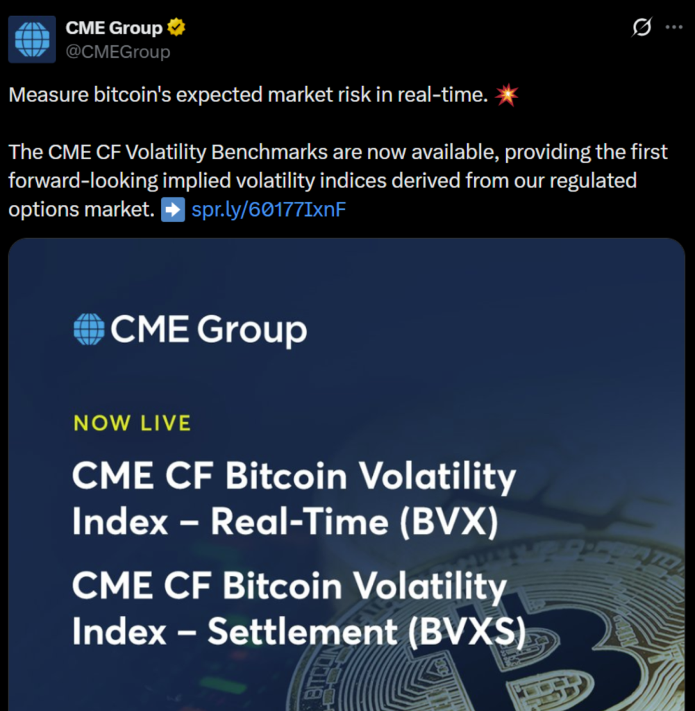 CME Group, the world’s biggest derivatives exchange, has just launched its first Bitcoin Volatility Index. This gives institutions a standardized way to measure expected 30-day BTC price swings. It’s like Wall Street’s VIX.