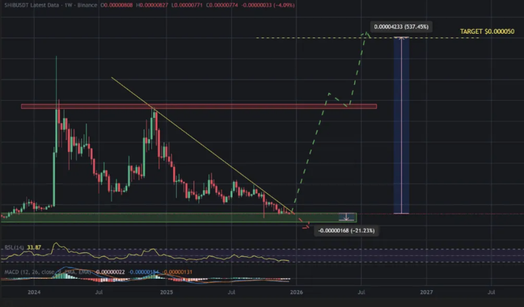 With burns no longer reducing supply, the Shiba Inu price prediction looked toward the downside. During the week before December 19, SHIB traded in a narrow range around $0.0000076 to $0.0000082, showing fading bid strength and quicker sell reactions near resistance.