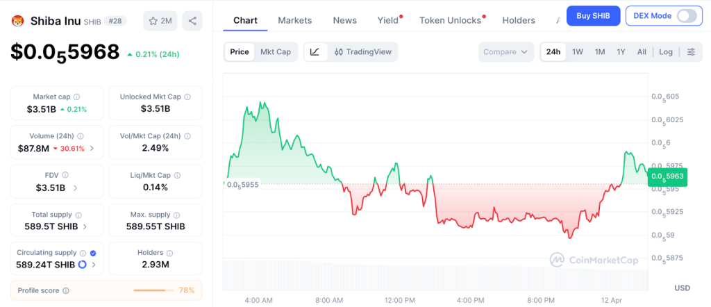 Shiba Inu (SHIB) trades at $0.0000059 after the meme coin market crashed from $109.7 billion to $34 billion while SHIB sits 93% below its all time high per CoinMarketCap. Open interest dropped 63% since January to $54 million.