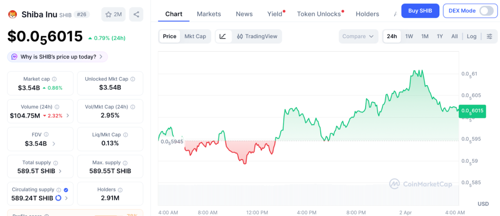 According to CoinMarketCap, Shiba Inu trades near $0.000006 as of April 1, with technical indicators reflecting a weak outlook and the token stuck in a tight range.