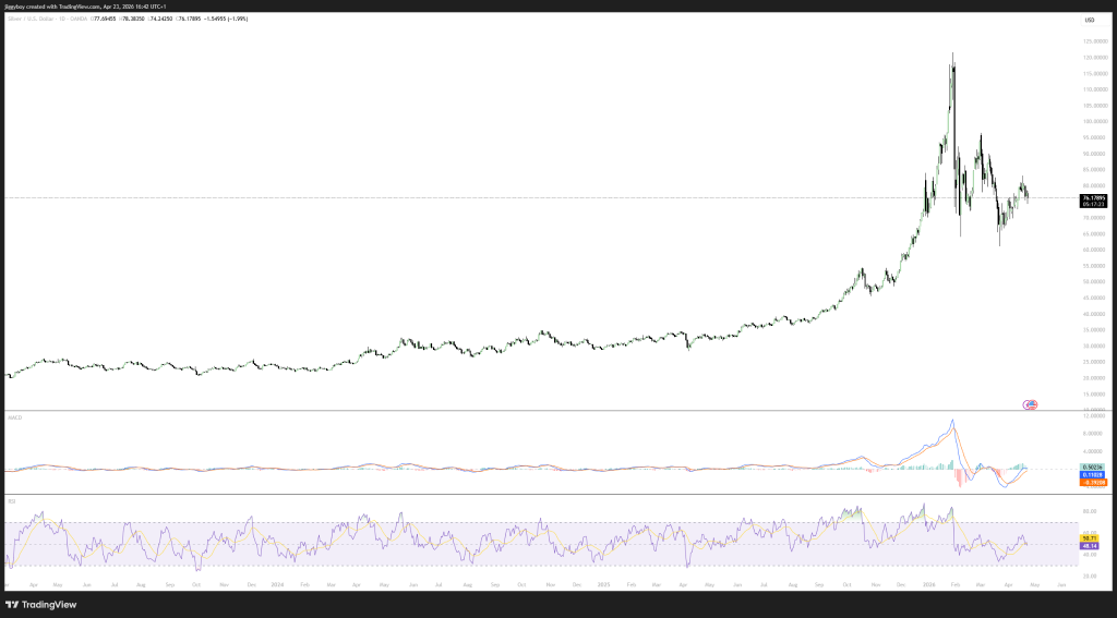 Gold and silver shot up earlier this year. The gold price broke above $5,500 and silver got close to $125. Then both dropped hard in March. Since then, price moves have slowed down. Gold is now around $4,722 and silver near $75.