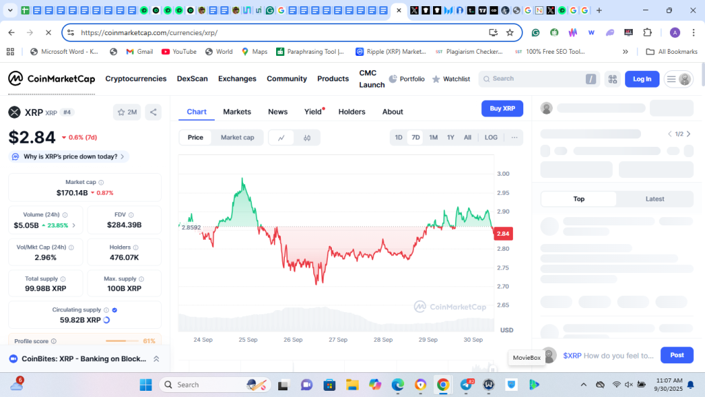 Following a slight dip on its weekly chart, the XRP price hovers around $2.8. With daily trading volume increasing by 50% to $5.1 billion, bulls are targeting a retest of $3.18, its 30-day high.