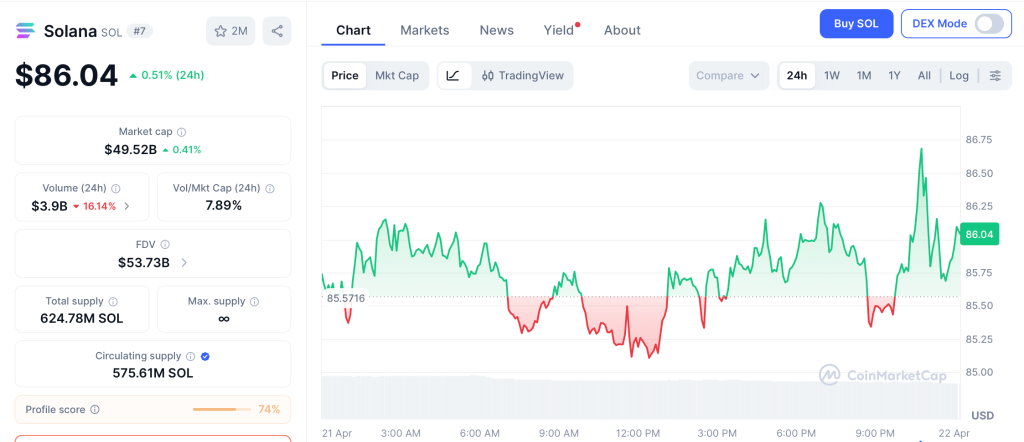 Solana (SOL) trades at $86.04 on April 21, up 0.41% on the day per CoinMarketCap, with Alpenglow on deck and the new Grayscale GSOL giving institutions their first staked SOL route. Doo Prime targets $336 by late 2026, and CoinMarketCap analysts flag $200 to $300 as the base case if catalysts fire together.