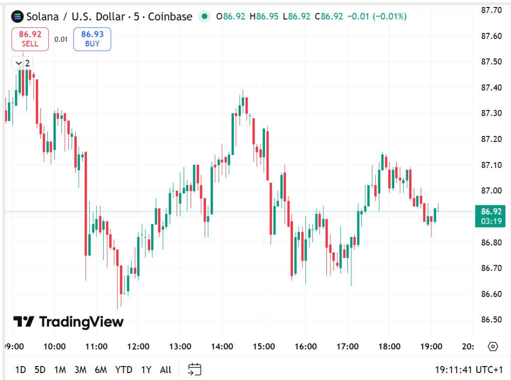 Currently, Solana’s price is trading at $86.92. Within the last 24 hours, SOL has declined by 4.28%. Solana’s current market capitalization stands at a considerable $49.75 billion. The daily trading volume for Solana is recorded at $4.13 billion. This represents a 15.78% decline within the broader cryptocurrency ecosystem.