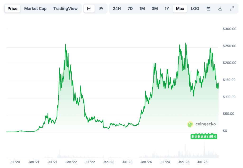 Several Solana price prediction models now place SOL in an upward trend toward the $175 to $200 range. More bullish estimates say a drive close to $250 is possible by mid-2026. This would be an almost 2x return from the current $131 price: