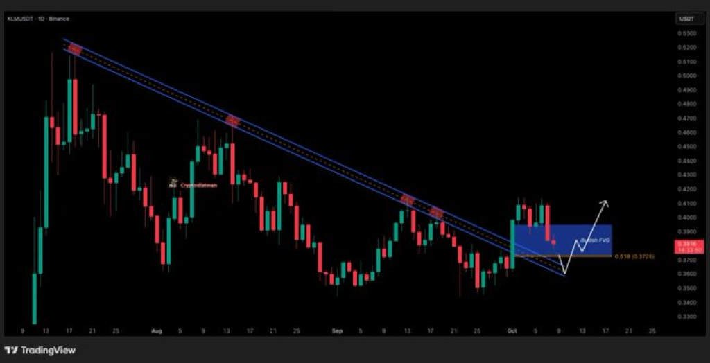 Batman also noted that the 0.618 Fibonacci retracement level looks a bit lower on the chart. That means XLM price could dip a little further before the next push. This is actually healthy; markets often pull back to these levels before continuing upward.