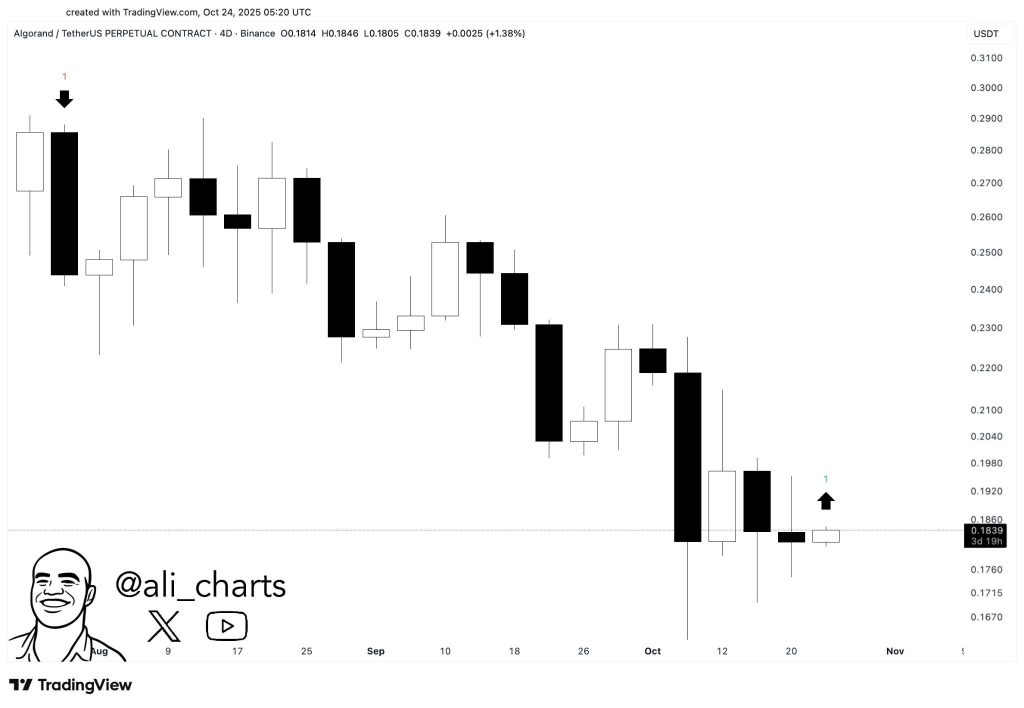 Luciano highlighted that the setup looks almost identical to the ones that led to rallies earlier this year. If that pattern holds, ALGO could be preparing for another move toward $0.30-$0.35, and possibly even higher up to $0.60 if the market gets a broader bullish push.