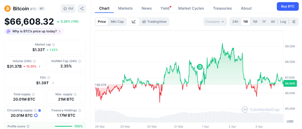 Bitcoin (BTC): $66,608 as Whales Distribute Into Holiday Weekend