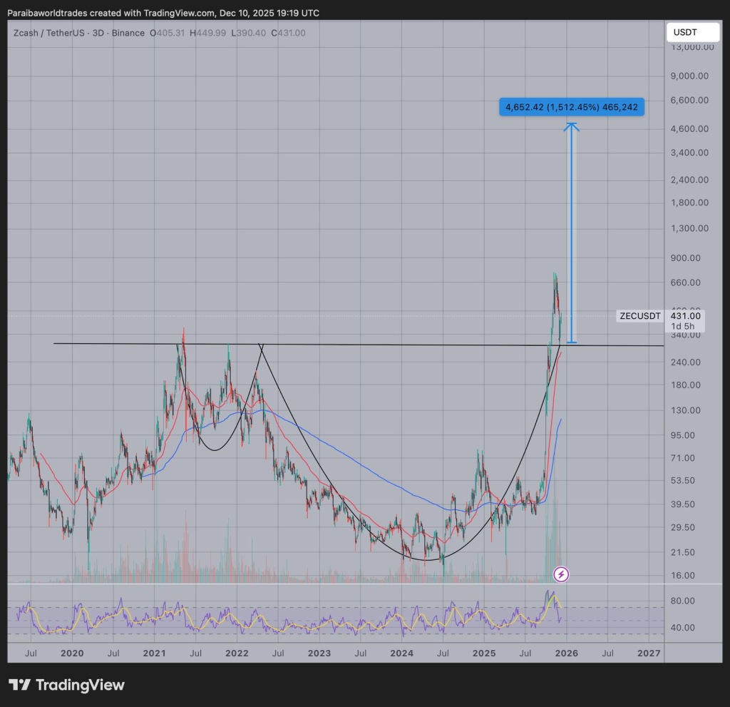 ZEC Chart: A Massive Multi-Year Cup-and-Handle Structure