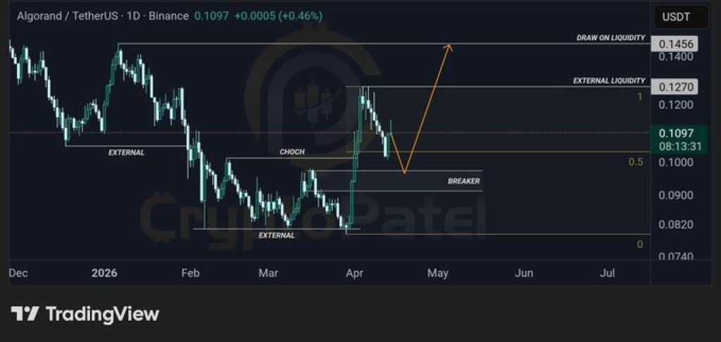 However, the bullish idea only works if price holds its structure. If the ALGO price closes a daily candle below $0.0786, the current setup falls apart and the market likely shifts back into a bearish phase.