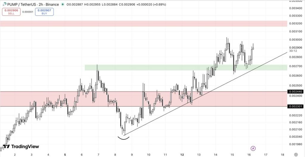 From here, the roadmap is fairly straightforward. If the PUMP price can flip $0.0030 into support, buyers likely stay in control and the $0.0032–$0.0033 zone becomes the next area to challenge. A clean move through that region would make targets around $0.0035 feel more realistic.