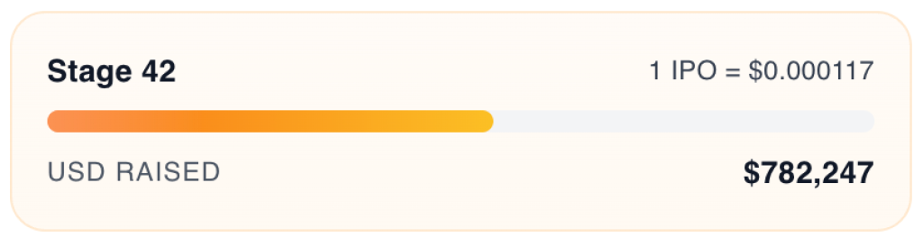 So far, the pitch seems to be convincing for many. For context, the IPO presale has raised over $782,000 in more than 40 stages. And the IPO price in Stage 42 of the crypto presale is now $0.000117.