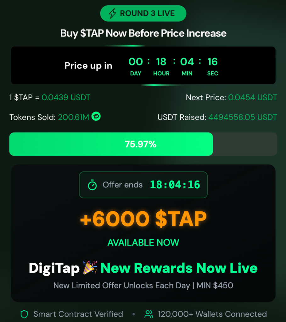 Digitap Crypto Presale Hits 120K Wallets as $TAP Demand Builds