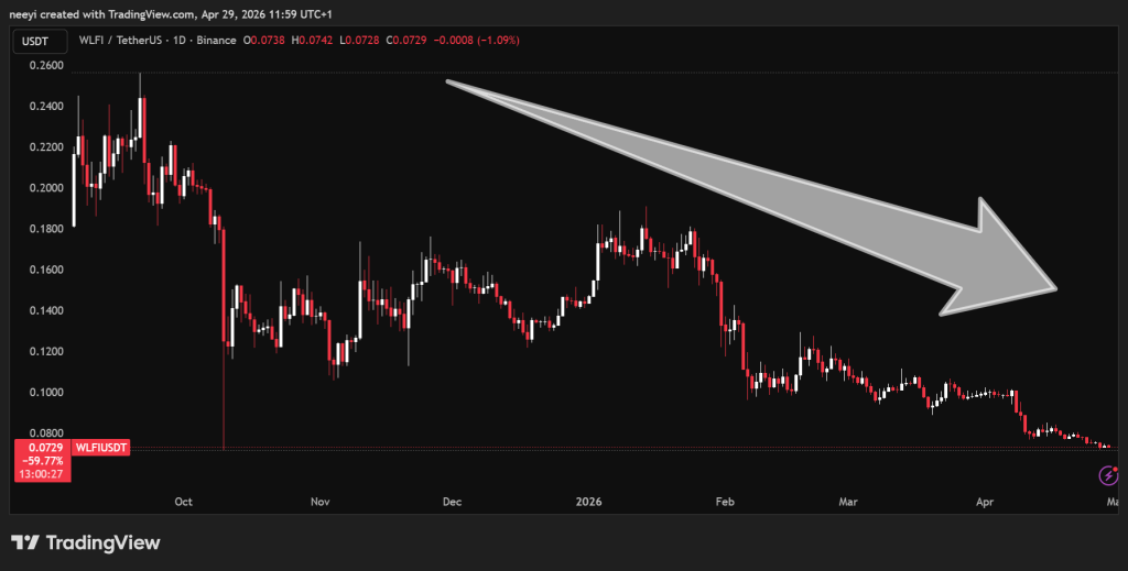 Market history shows that regulatory pressure rarely fades quickly. The WLFI price has struggled to recover since those concerns appeared, and each new development has added further weight on sentiment.