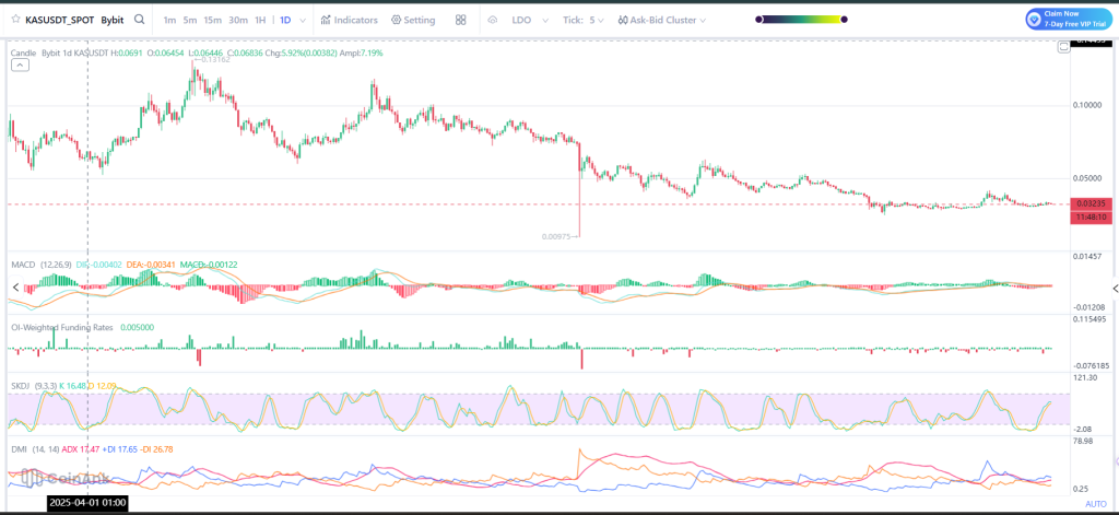 If KAS holds above $0.033, it could try to move back toward $0.045. A break above that level may open the door to $0.06–$0.07.