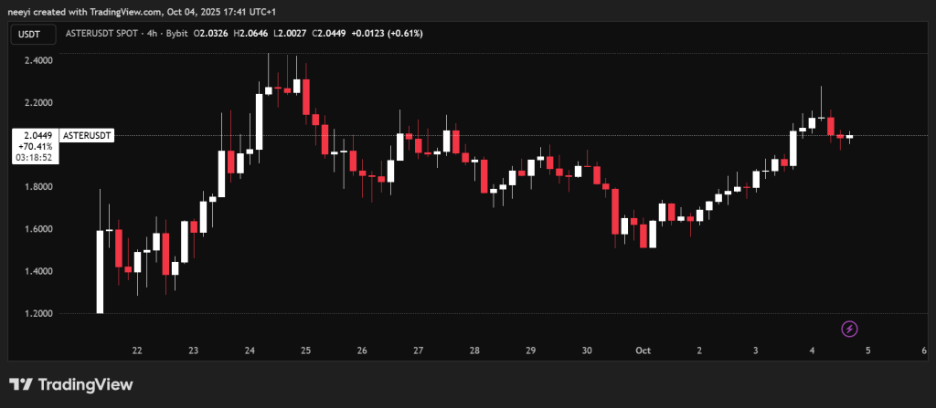 Aster is still new, so there isn’t much long-term chart data yet. On the shorter 4-hour chart, it looks like the market hasn’t found a solid bottom. Some traders expect it to settle around $1.70 to $1.90 before any big upward move.