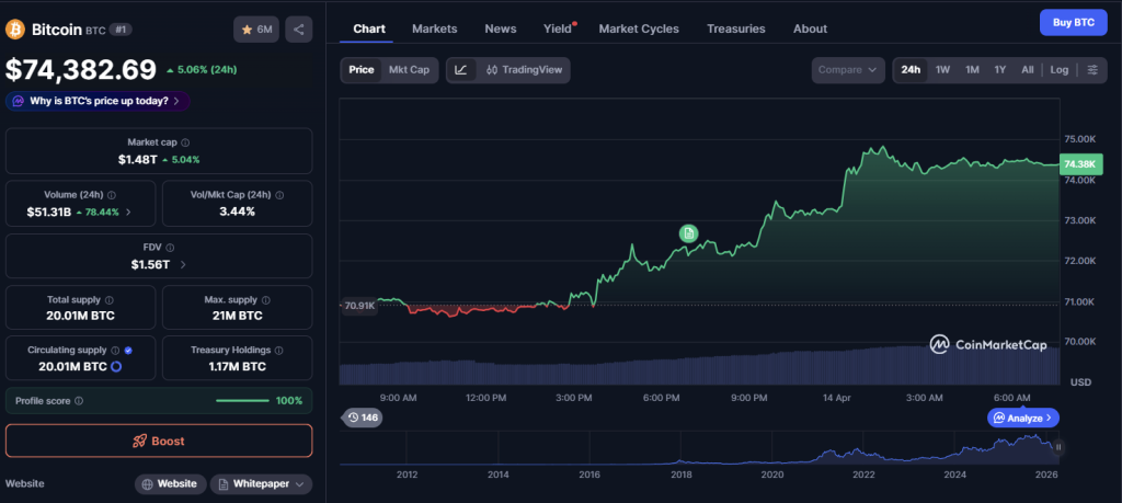 The key question now is whether Bitcoin can sustain above the $73,000–$74,000 zone. A failure and break below $69,000 would signal a false breakout and a deeper correction.