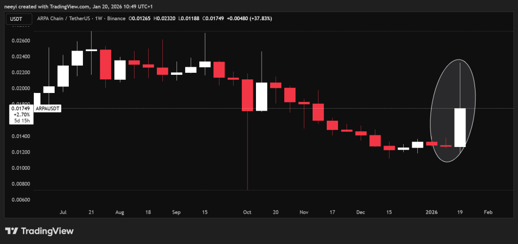 ARPA price delivered a sudden and aggressive move that caught attention across the market. Yesterday alone, ARPA price climbed by around 80%, marking one of its strongest daily performances in recent months. This jump did not appear out of thin air. Several developments have been aligning quietly, and price action finally reflected that shift.