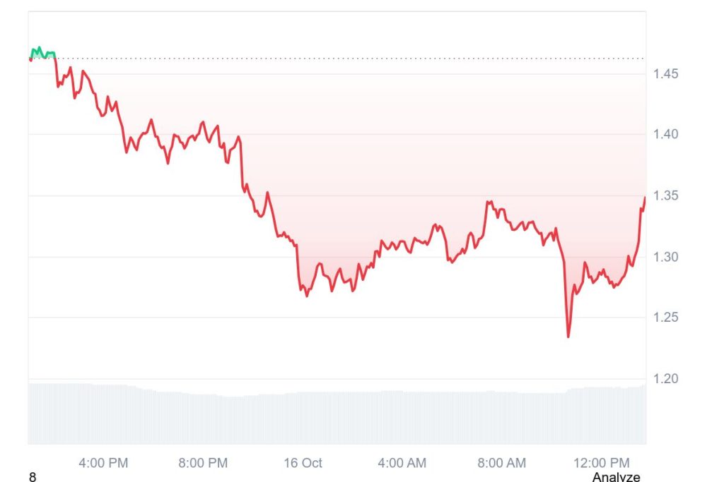 The RSI (14) is sitting around 51, which isn’t oversold yet, but it’s trending lower. The previous support at $1.41 has flipped into resistance, meaning bulls will need to reclaim that level before any real recovery can begin.