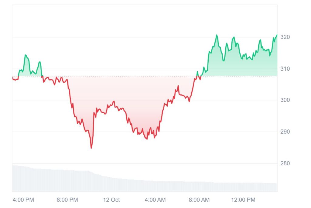 For traders, the immediate level to watch is $320. If TAO holds that, momentum stays on track. The next key test is around $327, which lines up with the 30-day moving average. A clean break above that could spark a stronger short-term rally.