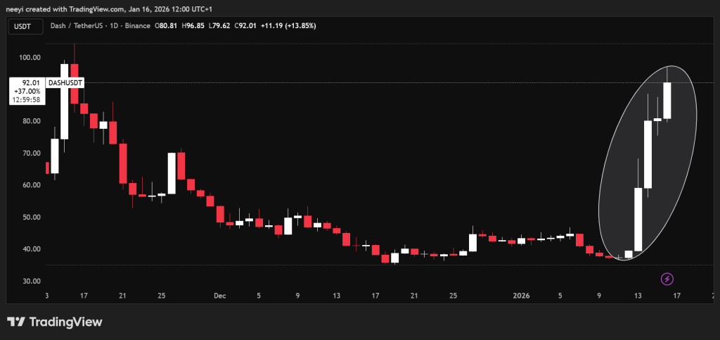 Dash (DASH) price has moved fast enough to catch attention even from traders who usually ignore older coins. A rally of roughly 150% in just 5 days pushes DASH back into conversations it has not dominated for years. That kind of move rarely happens without a clear catalyst, this time the drivers are easier to spot than many expect.
