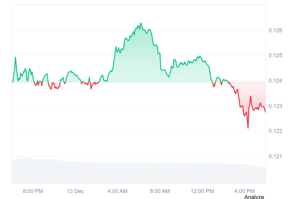 The current weakness started when HBAR failed to hold above $0.132 on December 12. That level had been acting as support, but after several failed attempts to reclaim it, buyers ran out of momentum.