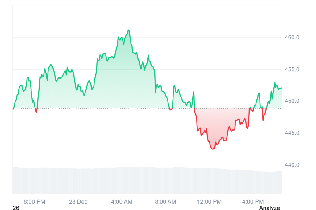 After dipping earlier, the Monero price managed to climb back above the $445 area and hold it. That may not look exciting on the surface, but in this kind of market, holding key levels often matters more than chasing explosive moves.