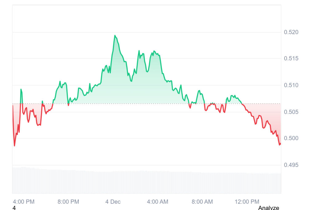 The ONDO price slipped back under the $0.50 mark today after a pretty choppy 24 hours. The price actually made a decent push above $0.515 overnight, but that momentum didn’t last.