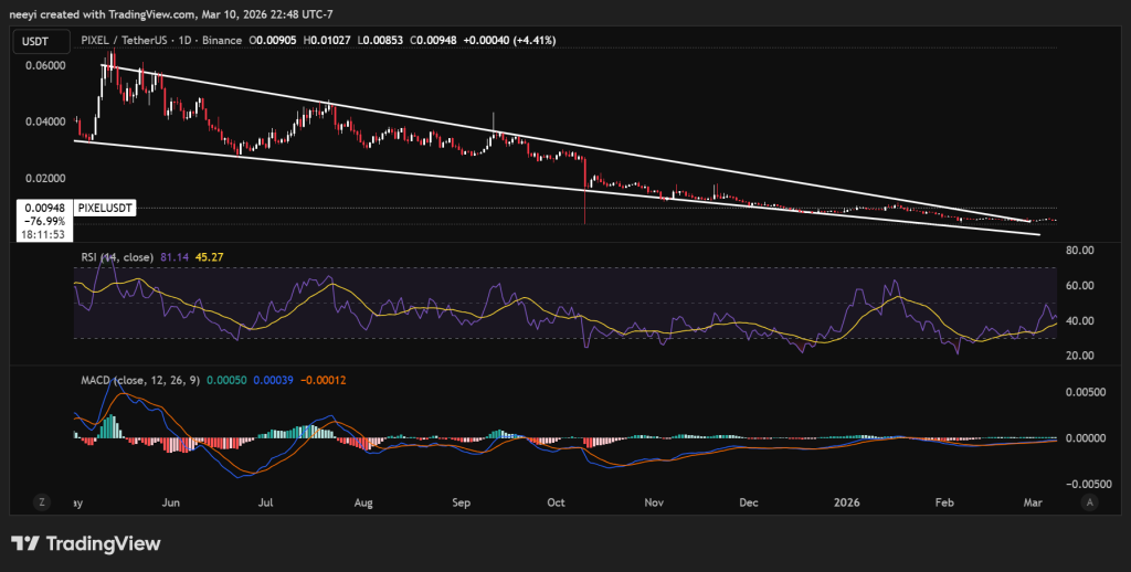 The immediate trend for PIXEL depends heavily on how markets react to the upcoming CPI data. Support sits near $0.0085, and holding this level would set up a potential test of the recent high around $0.00956. A successful break above that resistance could extend toward $0.011 in the next leg higher.