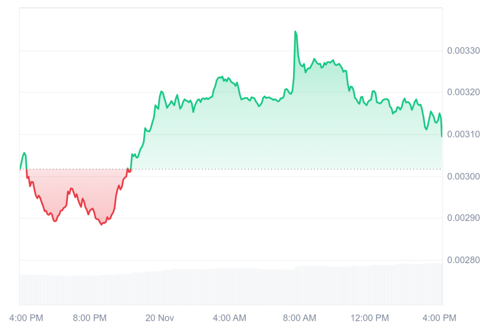 The PUMP price is getting some fresh momentum today, climbing back into the $0.00310–$0.00320 range after dipping earlier in the week.
