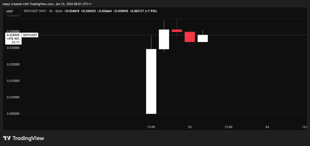 That coordination mattered. A single listing can move price, but multiple listings landing together often trigger a liquidity shock. New market participants gain instant access, spreads tighten, and volume accelerates fast. SENT price reflected this dynamic almost immediately as trading activity surged into the hundreds of millions in daily volume. That level of turnover signals aggressive price discovery rather than thin order book volatility.