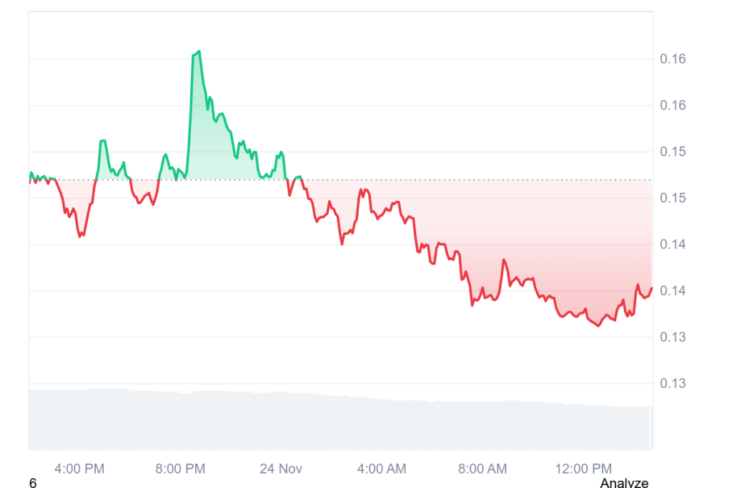 Starknet hasn’t had the smoothest trading day. After a strong run earlier this month, the STRK price has slipped to around $0.14, and the latest chart shows a steady fade into the red.
