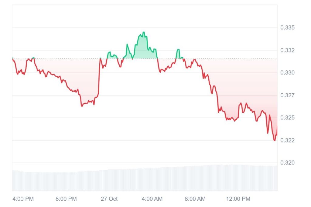 If it fails to bounce soon, a drift toward $0.29 looks likely. For now, Stellar’s just caught in the same sideways pattern as most altcoins, waiting for the next big move in Bitcoin to shake things up.