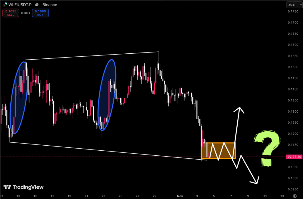 The chart paints two possible paths. WLFI could consolidate around its current range, as shown in the orange zone, and break upward if buyers regain control. Or it could lose support and extend the slide toward new lows. The next few days could be decisive.
