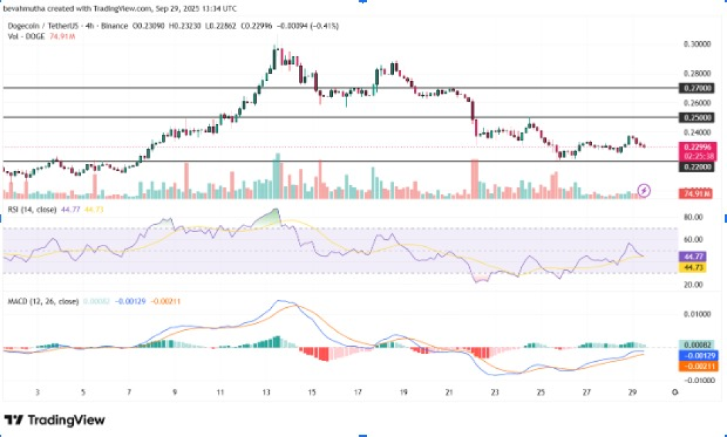 Dogecoin is drawing attention again as traders weigh whether the popular meme token can push past the $0.25 resistance or instead slide into a bearish reversal. In the latest few hours, the price of DOGE has been at $0.22982, which is a slight decrease of 0.47% over a few hours.