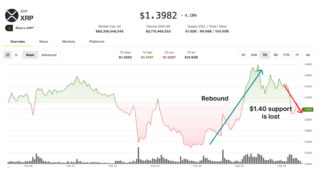 Now, despite the important recovery, the latest XRP price news was about the loss of the important $1.40 support, which was expected to hold during the last couple of days of February. The $1.50 mark looks now as a less clear target for early March.